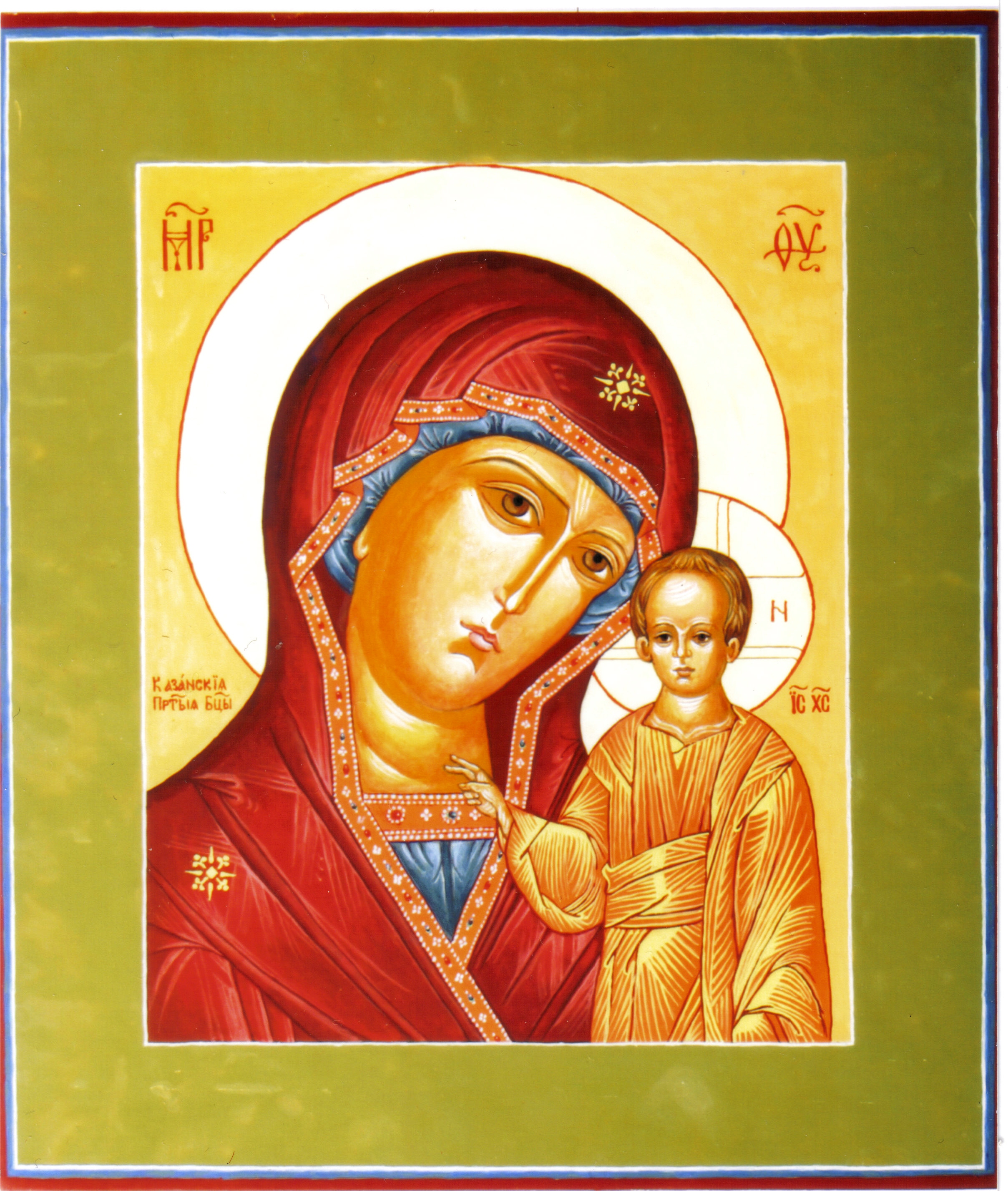 Тимофеем и марией магдалиной на полях. В храме покрова божией матери на на казанской иконе богородица изображается огрудно, в характерных одеждах, с небольшим наклоном головы к богомладенцу. Казанская икона божией матери со свв.